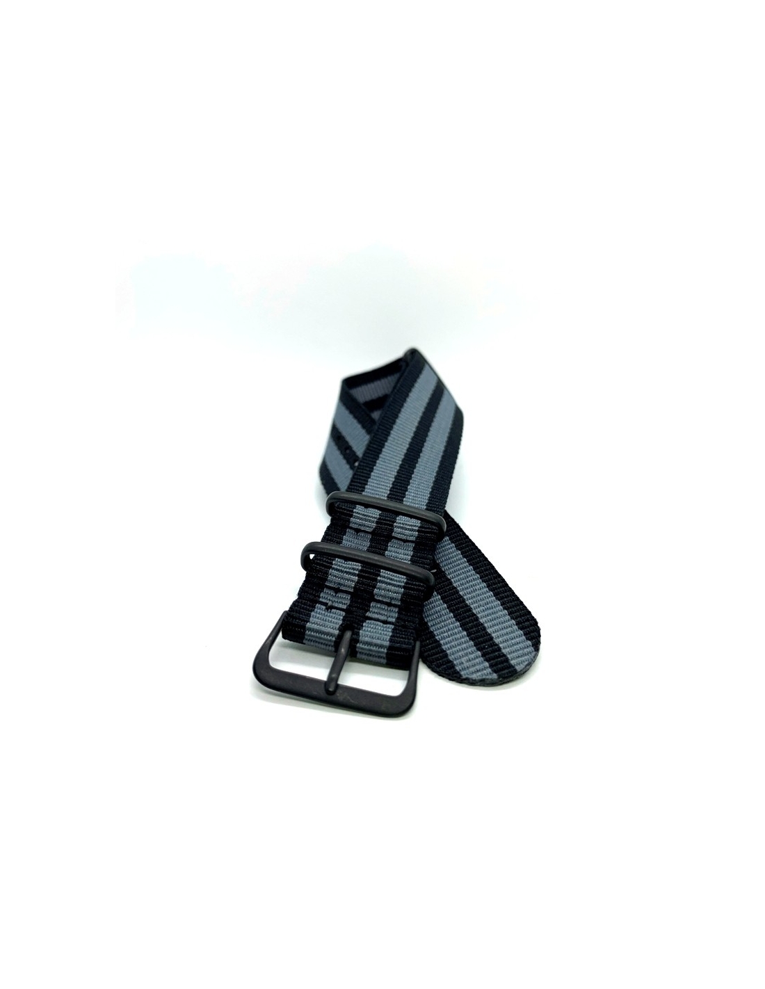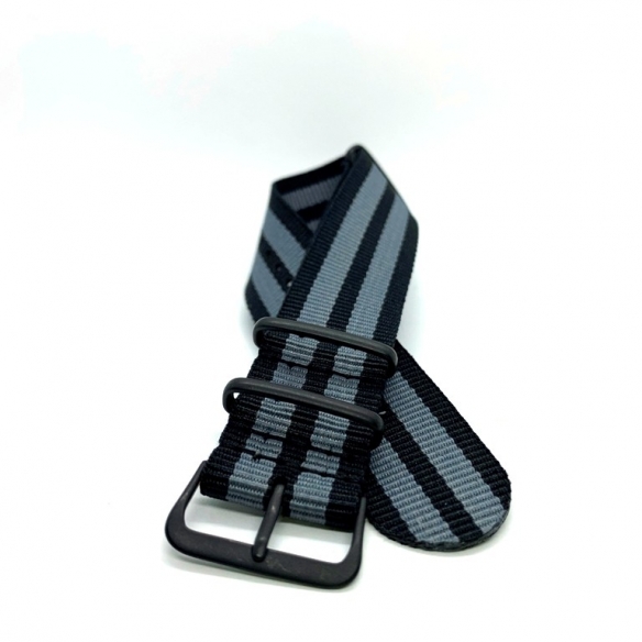 Cureaua James Bond NATO catarama neagra este un model clasic cu dungi negre si gri, inspirat din stilul iconic al ceasurilor militare. Fabricata din material textil rezistent, cu textura usor rigida si aspect mat, ofera stabilitate buna pe incheietura si este potrivita pentru utilizare zilnica.