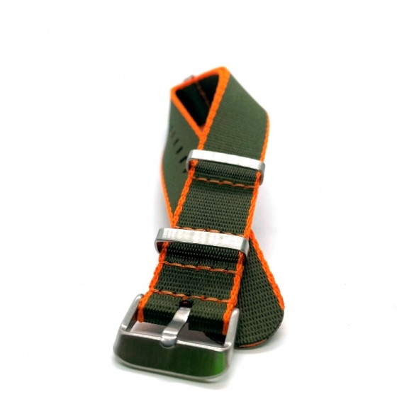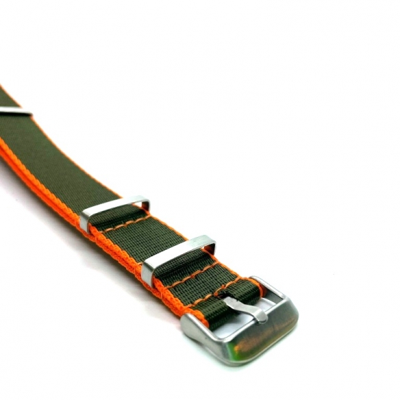 Cureaua NATO Core khaki cu margine portocalie combina look-ul tactic cu un accent de culoare indraznet. Fabricata din material textil rigid, cu textura mata si rezistenta la apa, aceasta curea este ideala pentru cei care vor un stil militar reinterpretat.