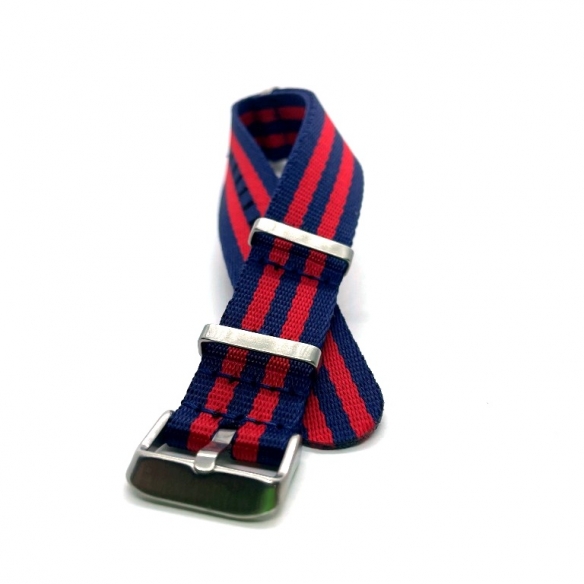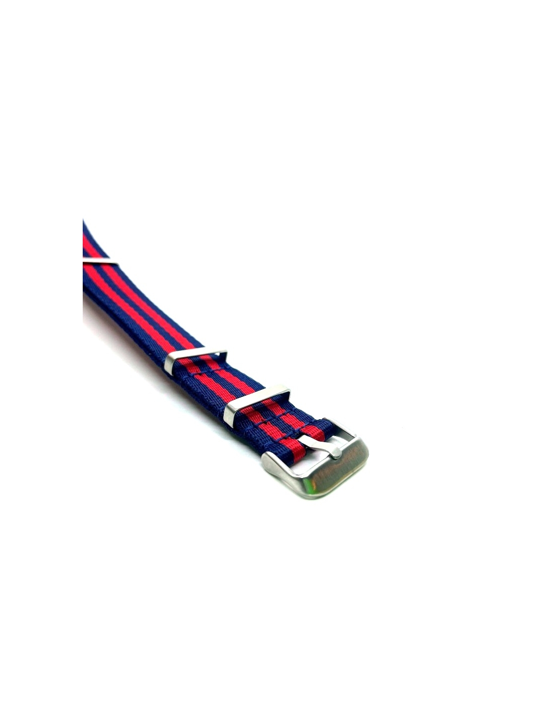 Cureaua NATO Core 3bleumarin-2rosu este o combinatie clasica si echilibrata, cu dungi contrastante care adauga un plus de stil ceasului tau. Fabricata din material textil rigid, cu textura mata si rezistenta la apa, aceasta curea pastreaza structura solida a modelului NATO, fiind o alegere durabila si versatila.
