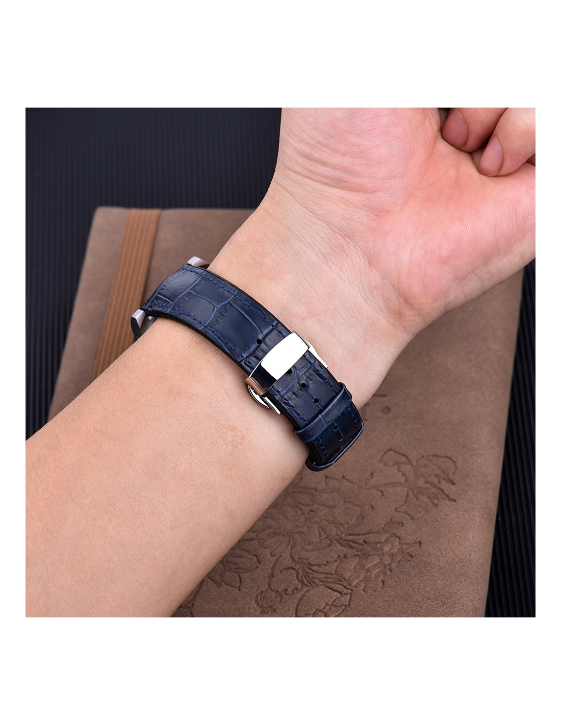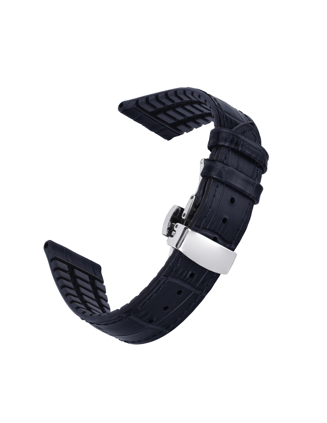 Aceasta curea imbina stilul sofisticat al pielii cu textura crocodil cu performanta siliconului premium. Exteriorul lucios, cu model embosat, aduce un aer elegant si clasic, in timp ce interiorul moale din silicon asigura confort sporit si rezistenta la transpiratie.