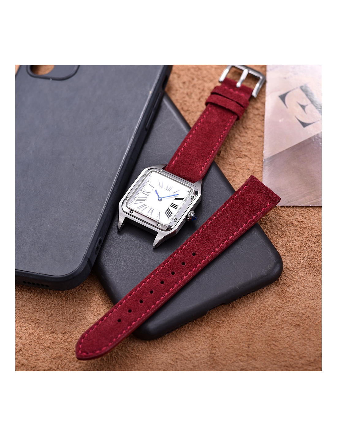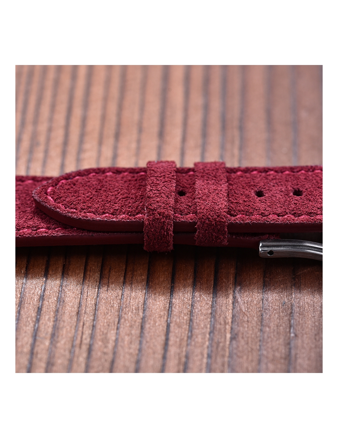 Cureaua din piele intoarsa rosu inchis este alegerea ideala pentru un look sofisticat, dar cu personalitate. Nuanta intensa si mata adauga profunzime, fara sa fie stridenta – un accent elegant pentru ceasuri cu carcasa argintie, aurie sau neagra.