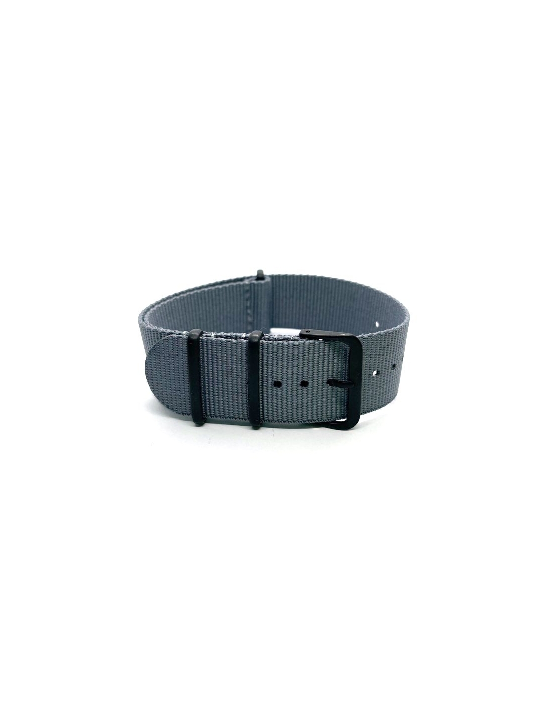 Cureaua Gri NATO catarama neagra este un model clasic, realizat din material textil rezistent, cu textura usor rigida si aspect mat. Ofera stabilitate buna pe incheietura si este potrivita pentru utilizare zilnica, fiind usor de asortat cu ceasuri sport sau casual.