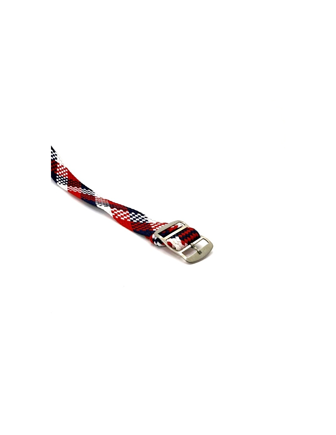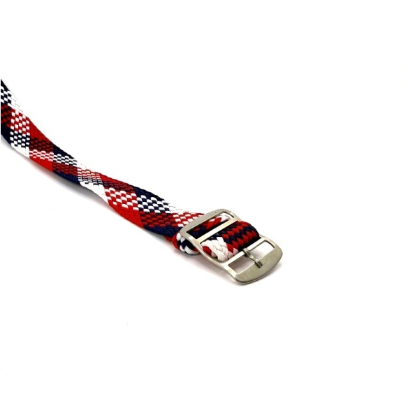 Cureaua Perlon bleumarin-rosu-alb aduce un contrast puternic si o personalitate aparte oricarui ceas. Confectionata din material textil impletit, este usoara, aerisita si confortabila, cu sistem de ajustare continua pentru fixare perfecta.